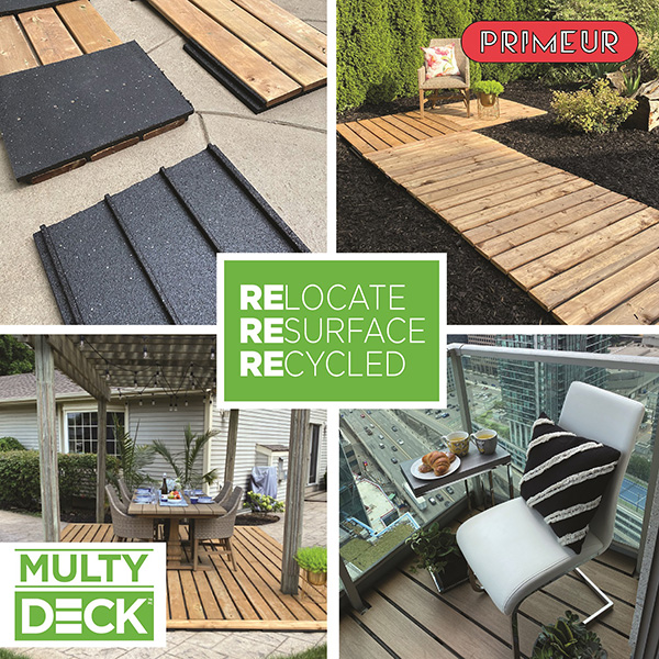 The latest innovation from Primeur – MultyDeck™ – extends not only the company’s recycled rubber collection, but it also enables garden retailers, DIY retailers and builders’ merchants to expand their offering to consumers with a fool-proof way to create new decking areas.