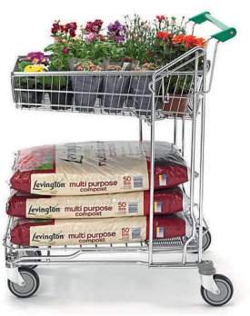 Designed for garden centres, this two-tier flatbed trolley offers a deep 55L basket for smaller, loose items, while the sturdy lower platform supports up to 250kg—ideal for heavy products such as compost bags. It nests efficiently with the basket in either a vertical or horizontal position, saving valuable storage space. An optional sidebar allows for transporting panels in garden centres.