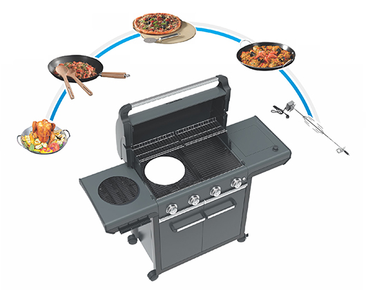 Simply take out the inner ring of the cast iron Culinary Modular Grid and insert one of the various Campingaz Culinary Modular Barbecue Accessories including; Paella pan, Pizza stone, Wok and Chicken roaster.