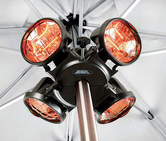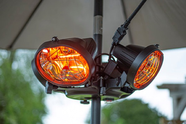 This superb parasol or tripod mounted electric heater is perfect for attaching to under parasols and can also be attached to a transportable tripod for flexibility. Four lamps will keep everyone warm on cool days and late summer evenings. With a smart hammered black finish, the Heatmaster Popular heater is both stylish and functional.