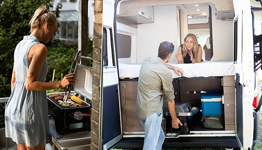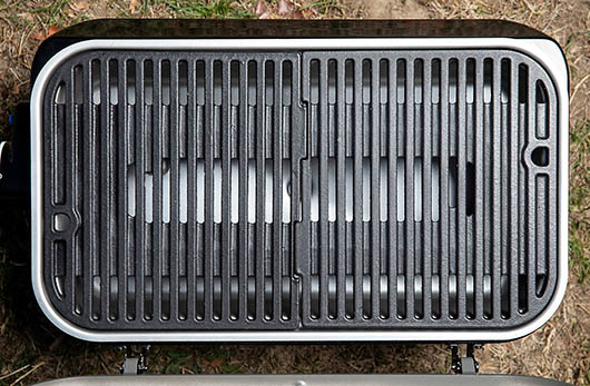 Thanks to Campingaz’s powerful Blue Flame two-burner system and Even Temp® Technology, the entire cooking surface, which is a split cast-iron grid and reversible griddle, can reach temperatures over 250°C so food cooks evenly.
