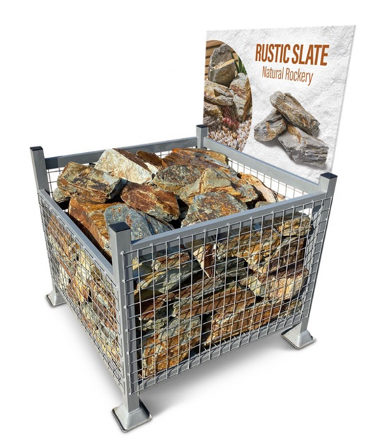 Their new, professionally made, metal stillage crates resolve the retail headache of merchandising Rockery lines, having been specially engineered for easy transportation into Garden Centres and for movement around the Landscape area.