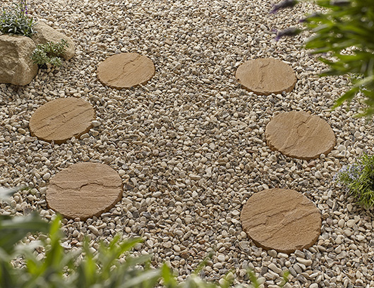 Manufactured in the UK stepping stones to complement the Borderstone paving range. Gold coloured textured concrete stepping stone to create a rustic finish. Low maintenance, these stepping stones create stunning pathways or work within decorative aggregates to add to your garden space.
