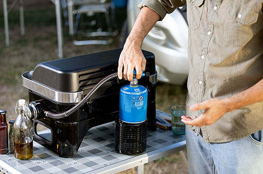 The Attitude 2go CV runs off a Campingaz® CV470 Plus cartridge, which slots securely into the integrated basket at the back of the barbecue. These gas cartridges are compact and lightweight for ease of transport and they can be disconnected and reconnected even when they’re not empty. Campingaz® gas cartridges are readily available throughout Europe and end users can find retailers at the click of a button using Campingaz®’s gas store locator on the website.