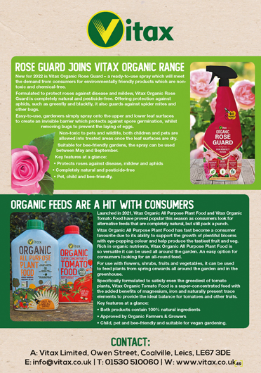 New for 2022 is Vitax Organic Rose Guard – a ready-to-use spray which will meet the demand from consumers for environmentally friendly products which are nontoxic and chemical-free...