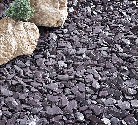 Flat, reflective stone that's dark, dramatic and contemporary. The 20-40mm plum coloured slate chips are perfect for paths, around plants and the top of pots. They are UK sourced and bagged, and are fish-friendly. The packaging contains 30% recycled material. Also available in bulk bags for home delivery.