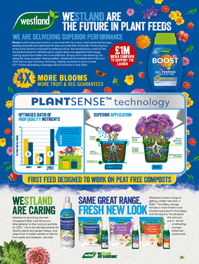 Boost Westland’s revolutionary new plant feed uses ‘plant sense technology’, to guarantee four times more blooms and more fruits and vegetables compared to watering alone. The first all-purpose plant feed optimised for both peat and peat free composts, it contains high-quality nutrients, seaweed, and an extra boost of potassium. With a unique water management system, this formulation absorbed into the soil quicker, making it easier and faster to water containers and less water-waste it’s better for the environment too!