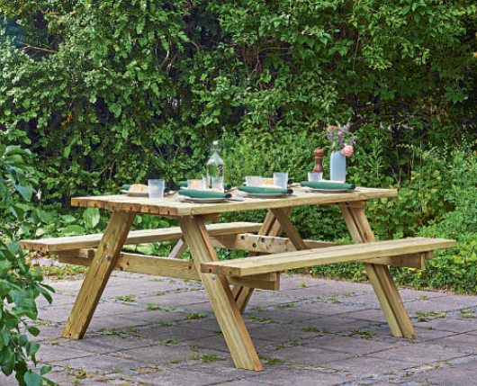 When you enter our EKJU wood furniture factory in Latvia, the first thing you see is a Danish designed picnic table. Throughout the factory, you will see many more. This is a staple product for us and is equally popular in the smaller children’s size. Another catalogue winner is the heavy-duty double-bench seat.