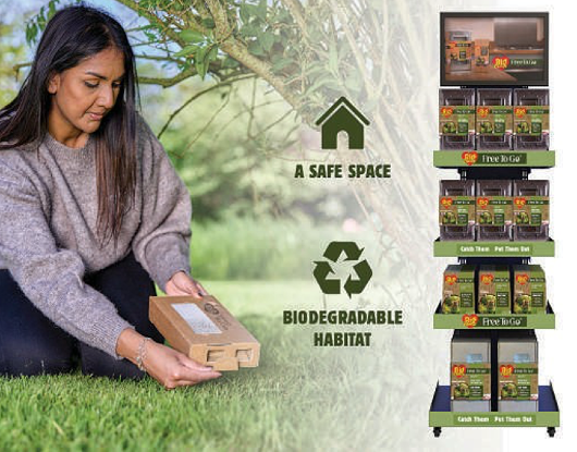 The Big Cheese Free To Go range of Biodegradable Mouse Traps is available on an In-store Problem Solved video promotion which includes a compact display and eye- catching video with a guaranteed 52% gross margin.