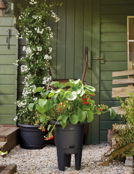 Already proving to be a must-have among consumers, the green basics strawberry pot is the secret to a successful strawberry harvest. Its raised feet provide multiple benefits, allowing strawberries to dangle freely, as they prefer, while protecting them from pests and reducing the risk of rot. Its large water reservoir ensures the plant always has just the right amount of water, and the large opening at the front of the pot makes refilling the reservoir easy without wasting a drop.