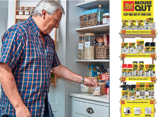 The Big Cheese Mouse Out includes wire wool and expanding foam blockers that are suitable for use indoors and out, along with powerful peppermint oil refresher sprays and granules that destroy unpleasant odours and disrupt rodent pheromone trails around the home. The range also includes ultra sonic repellers to provide totally pet-safe, welfare friendly round the clock protection.