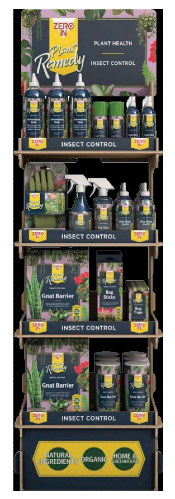 Zero In Plant Remedy range of fourteen products is available on a Development Deal which includes a compact display unit and guarantees participating retailers a 60% gross margin.