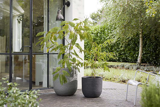 There are two sizes available: the 44cm model is perfect for low-growing plants while the 56cm one is particularly suitable for shrubs and small trees. Both are available in two colour tones: Millstone Grey and Alpine Grey.