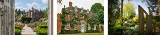 A sylvan landscape encircles four walled gardens with a collection of follies, topiaries, a nymphaeum and a lake. In its ten acres, it highlights naturalised fritillaries, 10,000 tulips every year, a potager and massed dahlias.
