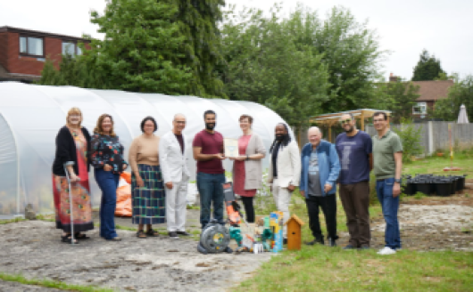 The team of volunteers put forward the space – once an unused garage site – to provide food for those without easy access to healthy food, offer workshops to empower individuals with new skills, and create a calming social hub in an otherwise urban environment. The location of the site, Failsworth West, is part of Oldham, the most deprived borough in Greater Manchester*. Half of wards in Oldham are in the most deprived 20% in England overall, including Failsworth West* – as is Oldham as a whole**.