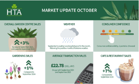 The Horticultural Trades Association October Market Update shows that garden centres recorded modest but steady sales growth in September 2025, with overall sales by value up +3% on September 2024 and +7% on September 2023...