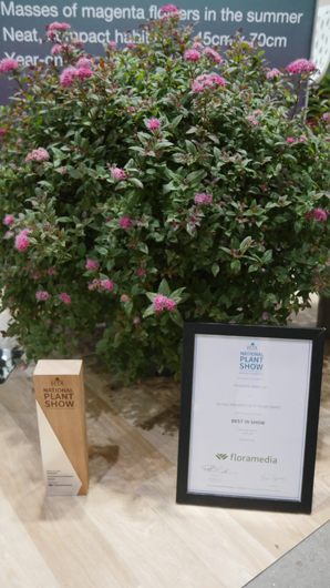 Farplants Sales Ltd - Spiraea WALBERTON’S® PLUM CARPET has been awarded the Visitor Vote, sponsored by Floramedia, at the HTA National Plant Show 2024 at the NAEC, Stoneleigh.
