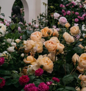 Rambling varieties such as Ghislaine de Féligonde brought clusters of soft apricot and cream blooms that shifted tone as they matured. For smaller spaces, English Ramblers like Malvern Hills® (Auscanary) and The Albrighton Rambler® (Ausmobile) offer a refined, more compact habit – perfect for achieving a romantic, airy effect.