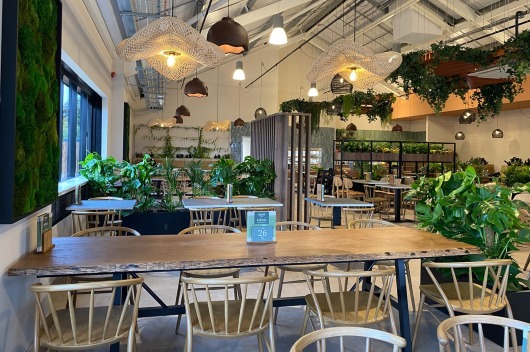 - A 200-seat restaurant and coffee shop, designed so customers can relax amongst the plants. Table service. App ordering and table bookings will be introduced in the coming weeks.