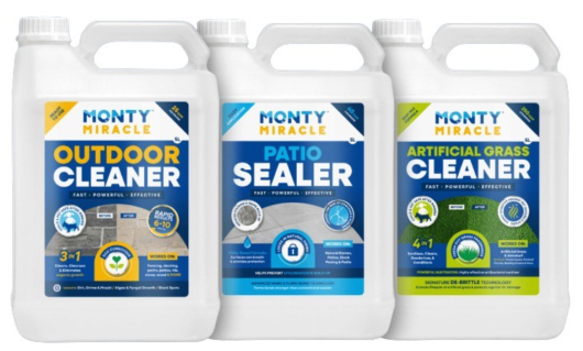 Monty Miracle Outdoor Cleaner is proven to eliminate black spot, algae, lichen and other organic stains on most external hard surfaces including stone, wood, plastic, concrete resin and coated metals, making it the ideal option for cleaning driveways, patios, walls and other exterior surfaces. Made here in the UK, Monty Miracle completely neutralises following the cleaning process and is biodegradable so can be hosed off onto the grass or soil leaving no trace.