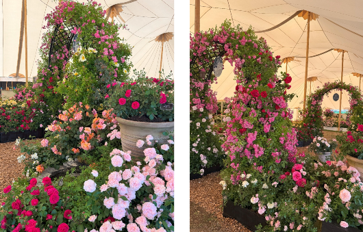 The award-winning stand is a beautifully immersive and educational display showcasing how roses can be both stunning and ecologically enriching. Framed by two rose-covered arches, a peaceful arbour, and a welcoming bench, the display encourages visitors to explore how a rose-filled garden can support and attract wildlife throughout the seasons.