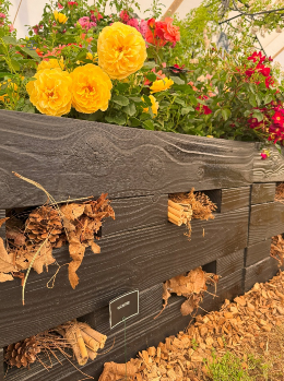 Supporting this wildlife-friendly theme are natural-style bug habitats within the borders, a hedgehog house, and water elements designed specifically to support birds, insects, and other garden creatures.