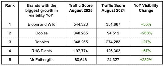 “Additionally, it was great to see so many brands boost it’s online visibility this year, with Bloom and Wild, Dobies and RHS Plants all experiencing growth in 2025. It’ll be interesting to see how this develops over the next twelve months and if a new brand will emerge as the UK’s online plant market leader.”
