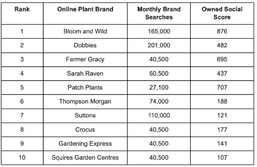 Other online plant brands that made the top ten include Farmer Gracy, Sarah Raven and Patch Plants, each recording a healthy amount of monthly brand searches.