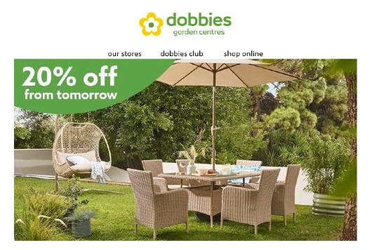 Last week we received a Dobbies customer e-mail notifying us about the start of a 20% off promotion on their Malmo garden furniture range, which came as a surprise given we had heard of good early season outdoor living sales at other garden centres we have visited recently.