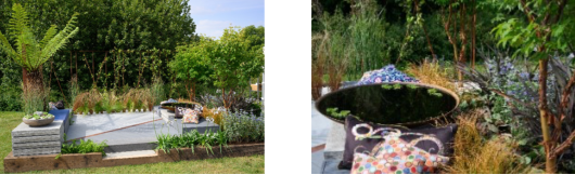 Winner of the Visitors’ Choice Beautiful Border was Capel Manor College Horticulture student Terry Gilmour, AKA The Cockney Gardener. Terry’s Beautiful Border, Fancy a Cuppa?, featured edible plants for making healthy, homemade brews, including herbs, flowers, small trees and fruit bushes. Vintage tea cups, pots and tins enhanced the theme, with trellis shelving for jars of dried ingredients. A small seating area offered the perfect spot to unwind and savour a cuppa.