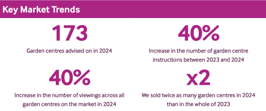 - 2024 saw more garden centre sales for Christie & Co and it is expected that there will be similar or higher volumes of transactions based on current pipelines