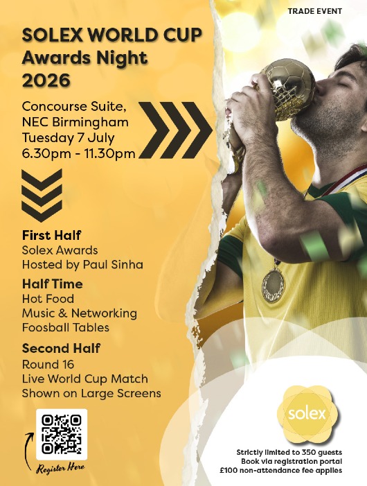 Summer starts here – and SOLEX is kicking things off in feel-good style as the SOLEX Awards & Afterparty returns for its third year on Tuesday 7th July 2026, bringing the celebrations to the Concourse Suite at the NEC, Birmingham – this time under the banner of the SOLEX World Cup Awards Night.